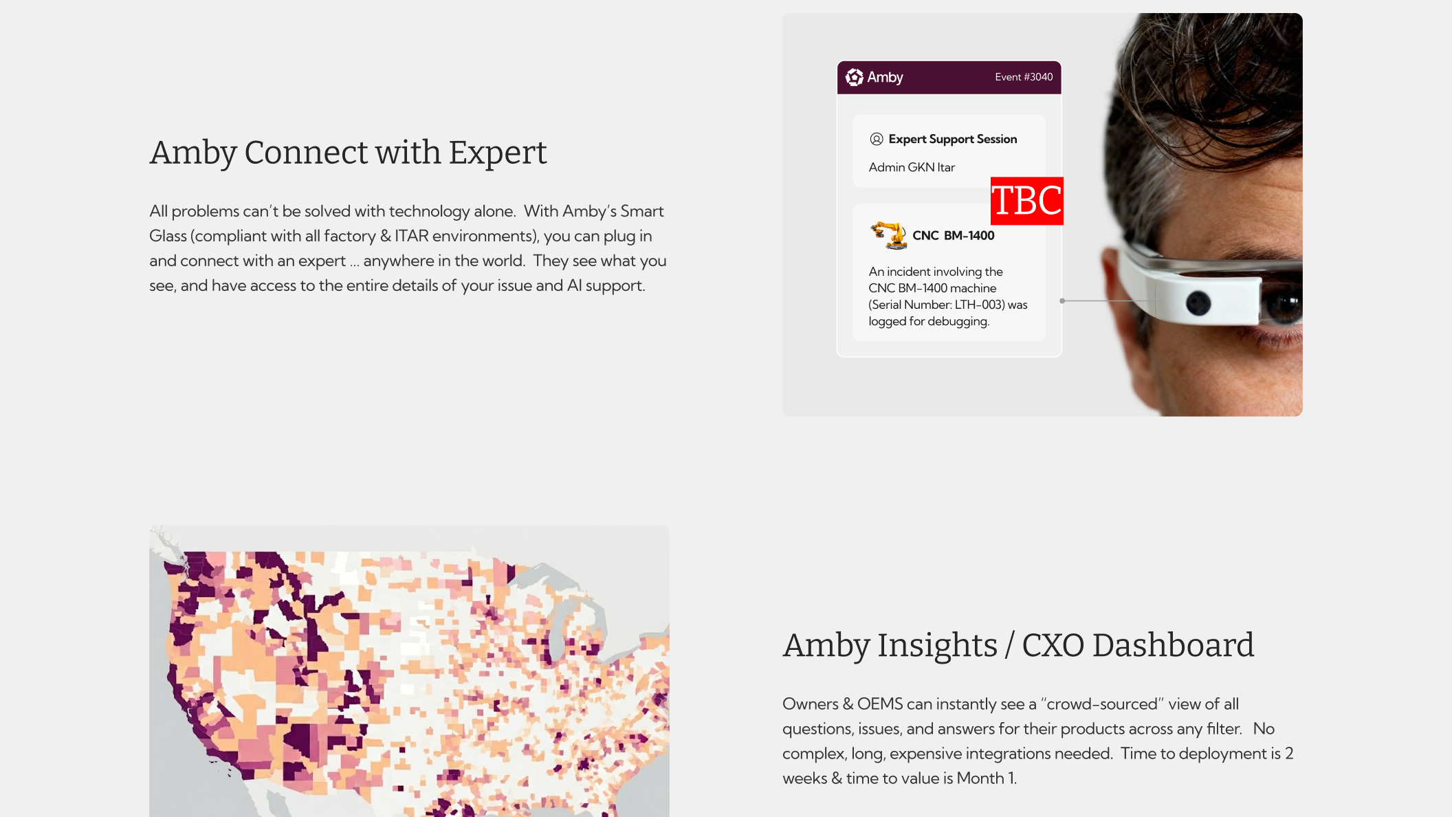 The tech startup Amby helps anyone fix machines by combining instant AI-powered troubleshooting with remote access to human experts. The platform gives operators, technicians, and end-users the confidence and knowledge to solve issues quickly.