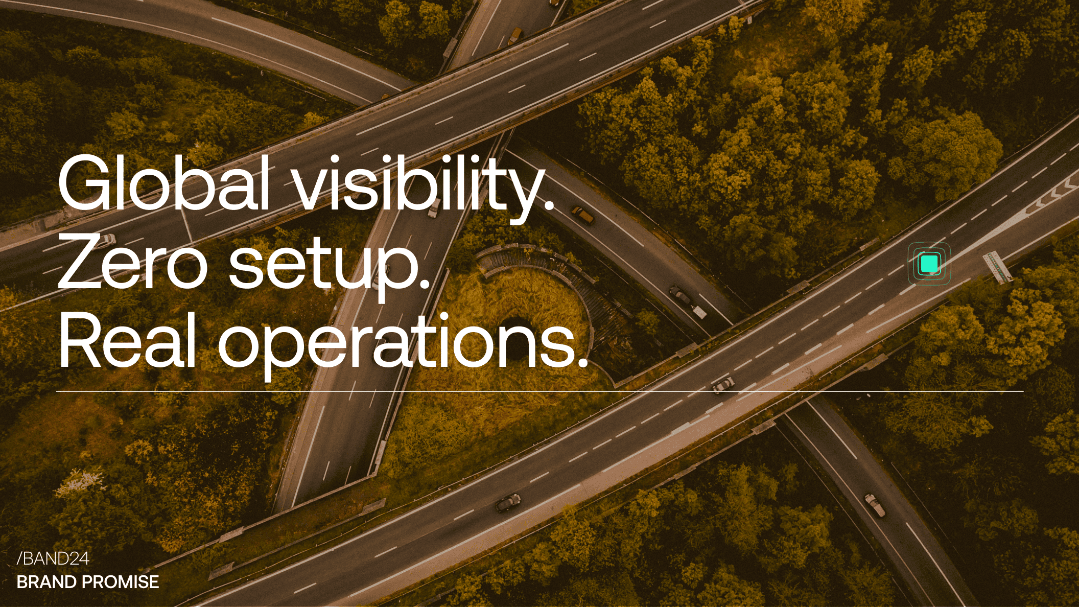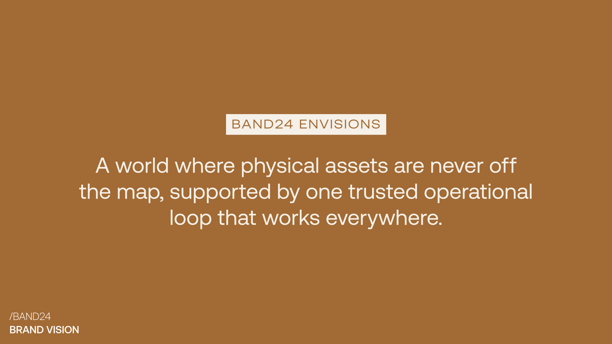 Band24's identity had to feel progressive, trustworthy, distinctive, and effortless in industrial environments. Also, enterprise buyers prioritize precision, so we built the story around it. The precise location of the asset became the connective thread, running from the isotype through the imagery and back into the product promise.