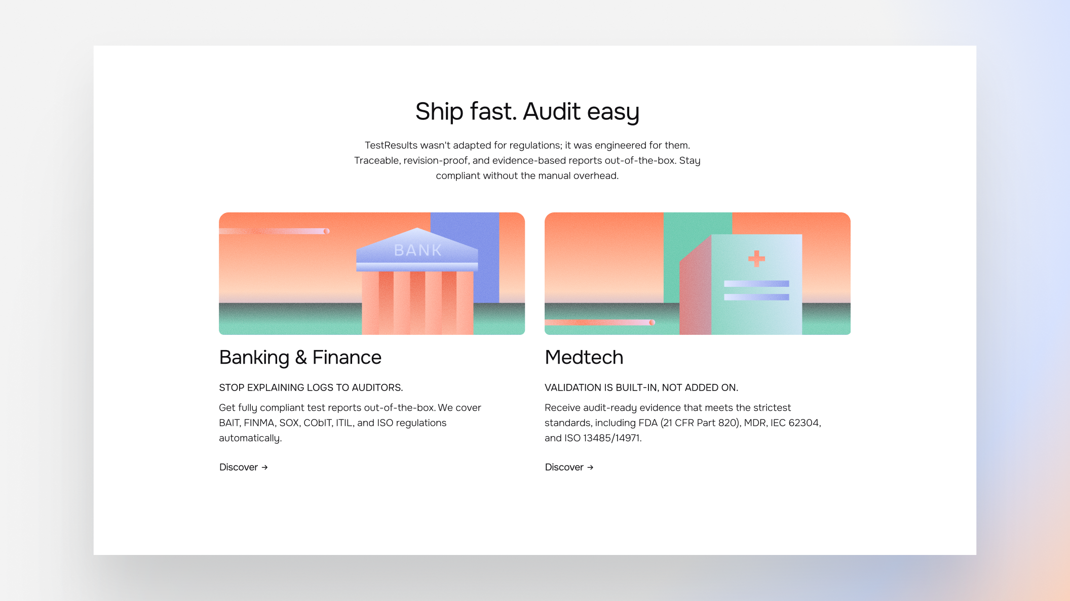 TestResults’ new website balances the needs of enterprise decision-makers and daily users. We moved away from the heavy, data-crammed layouts typical of competitors in favor of a clean, straightforward, and lightweight interface. Smooth animations simplify the software testing tool’s functionality and make its value immediately visible.