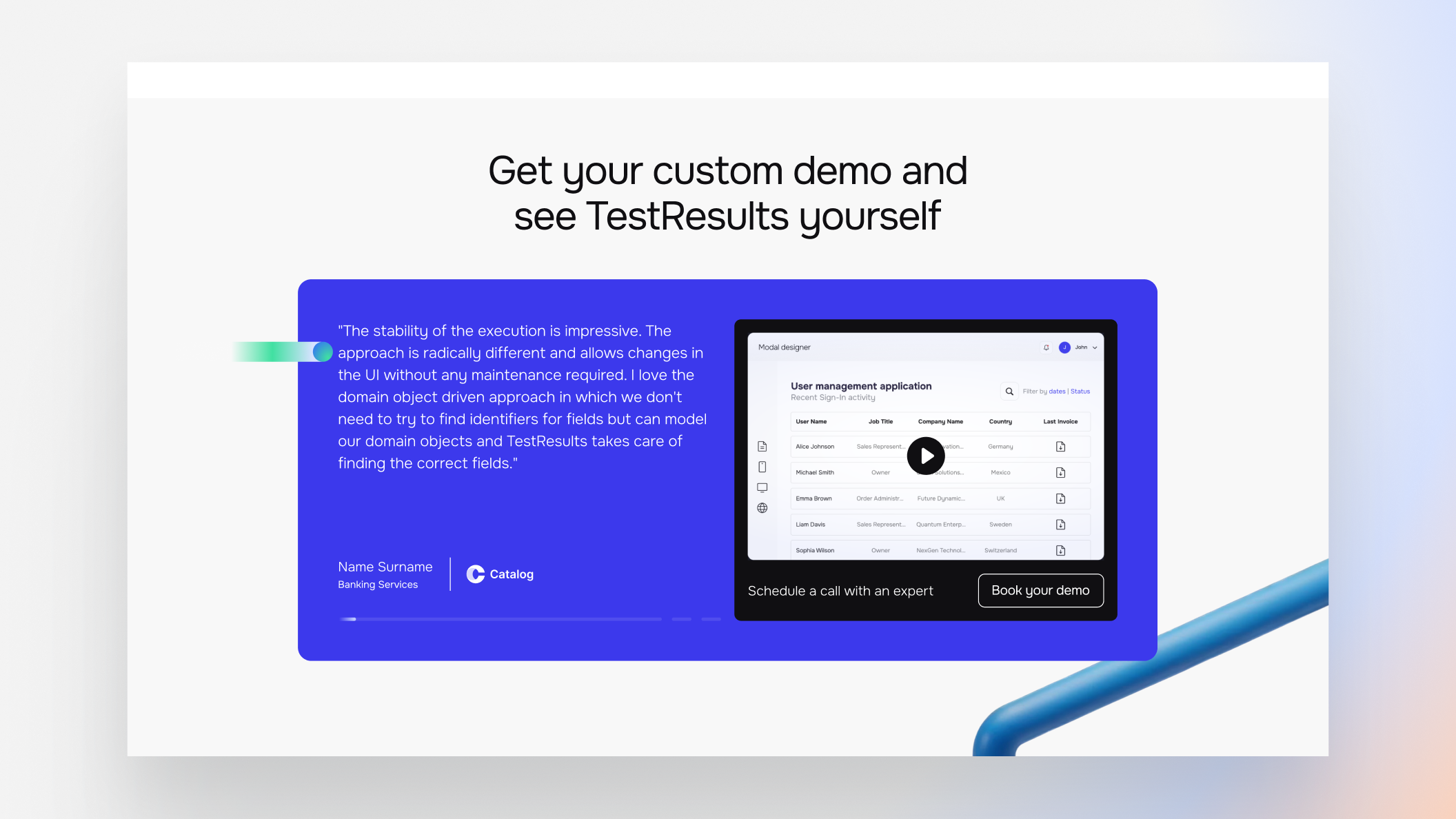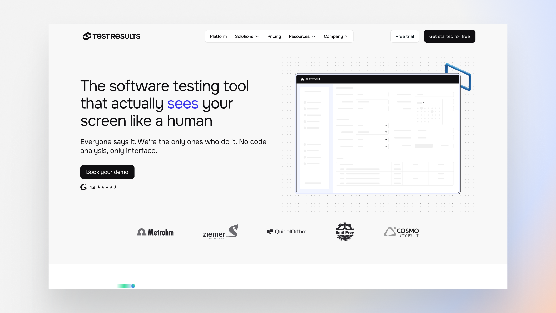 TestResults is a software test automation platform that allows non-technical teams in Medtech and Banking to run tests without writing code.