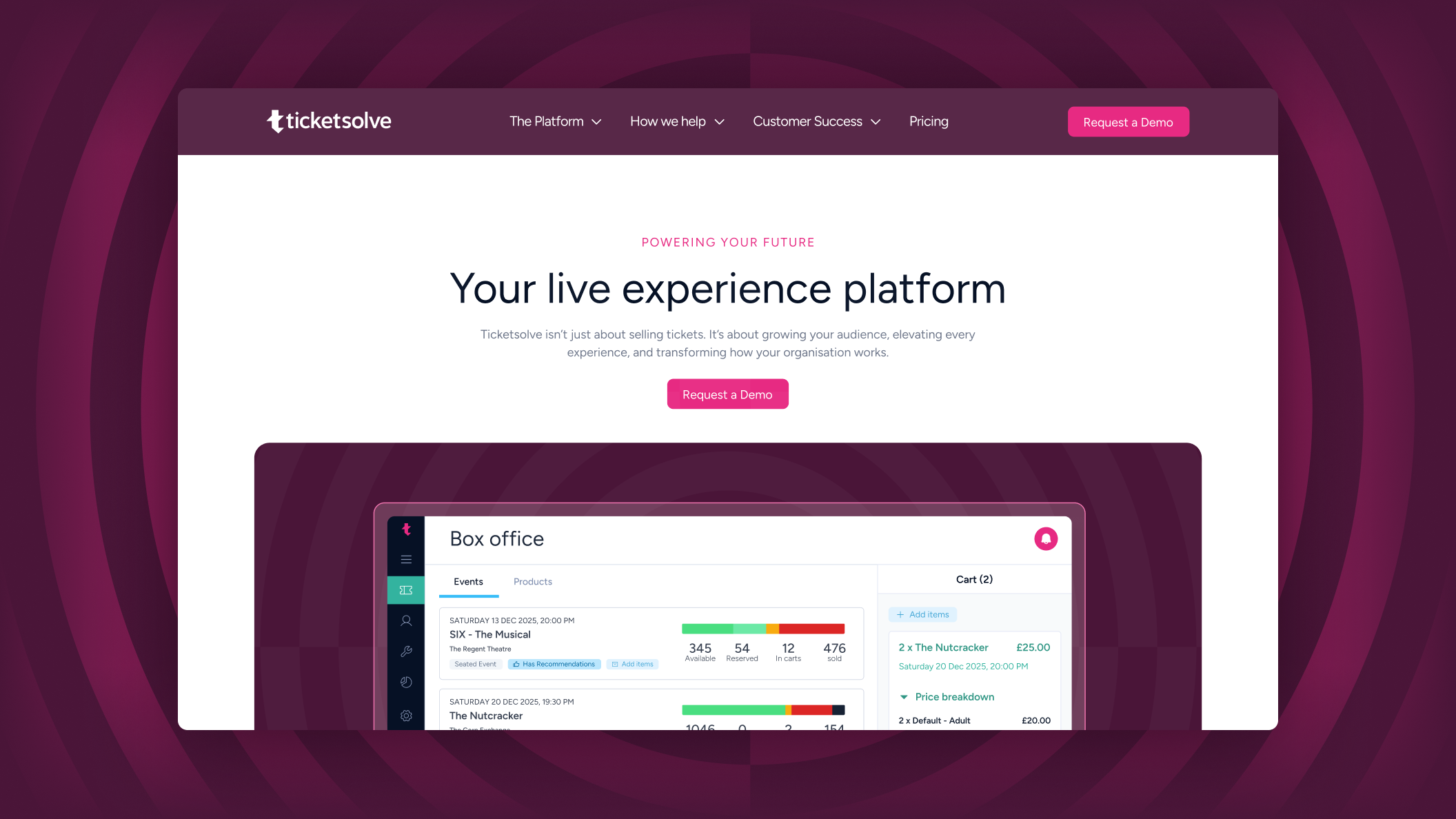 Ticketsolve empowers every department of arts, culture, and events organizations to thrive. Through their holistic platform and close partnerships, the company helps teams achieve organisation-wide goals.