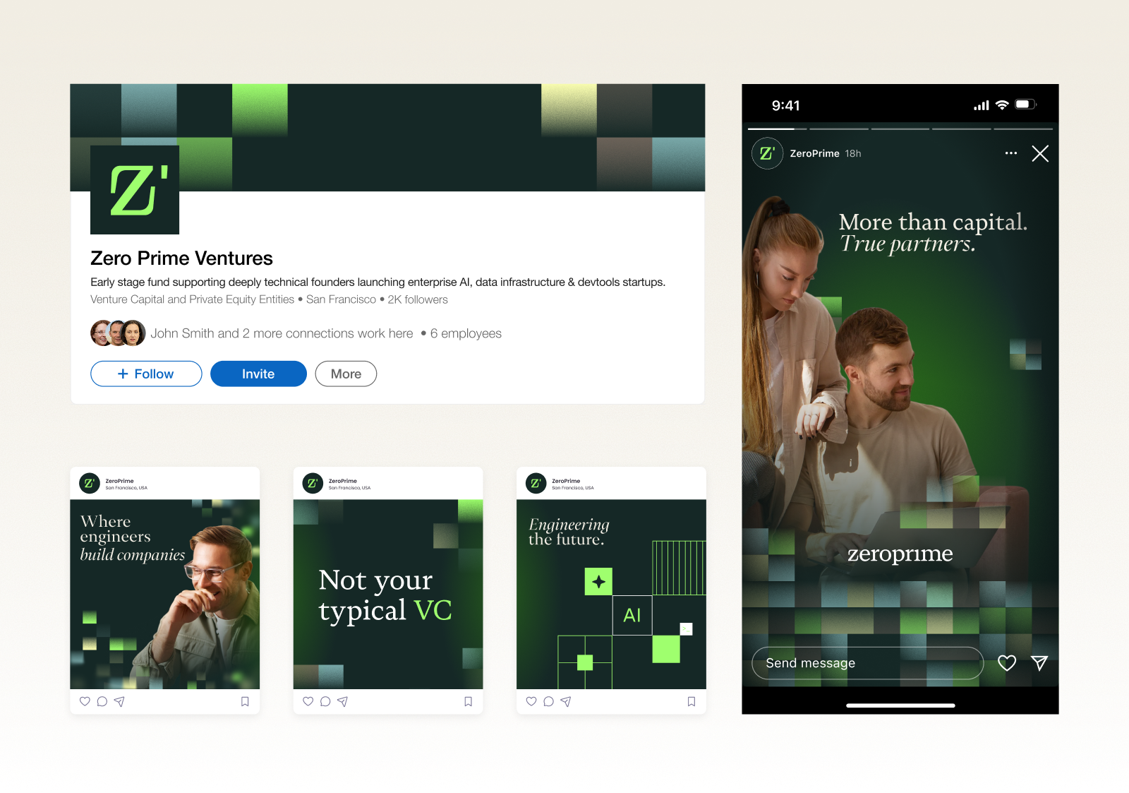 Zero Prime approached us to refresh its brand and digital presence, with the goal to better reflect its role as a leading investor in the data and AI ecosystem. Zero Prime’s value proposition was translated into a clear, confident brand system that resonates with AI and data-driven startups, reinforcing its reputation as a first-choice VC firm for founders building at the frontier of technology.